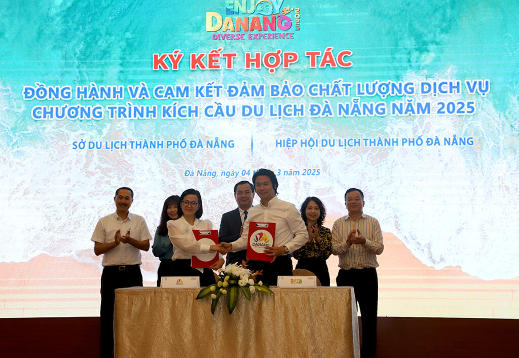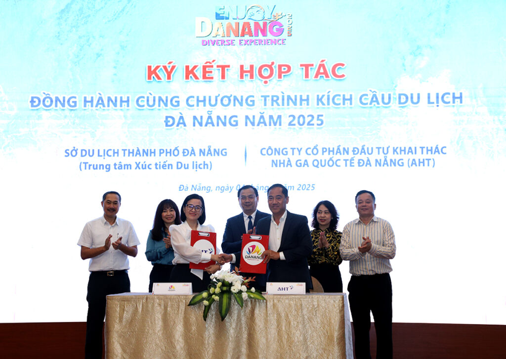 Trung tâm Xúc tiến Du lịch (Sở Du lịch Đà Nẵng) và Công ty Cổ phần Đầu tư Khai thác Nhà ga quốc tế Đà Nẵng ký kết hợp tác đồng hành chương trình kích cầu du lịch Đà Nẵng 2025. Ảnh: TITC