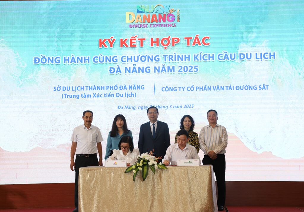 Trung tâm Xúc tiến Du lịch (Sở Du lịch Đà Nẵng) ký kết hợp tác với Công ty Cổ phần Vận tải Đường sắt trong việc đồng hành Chương trình kích cầu du lịch Đà Nẵng năm 2025.Ảnh: TITC