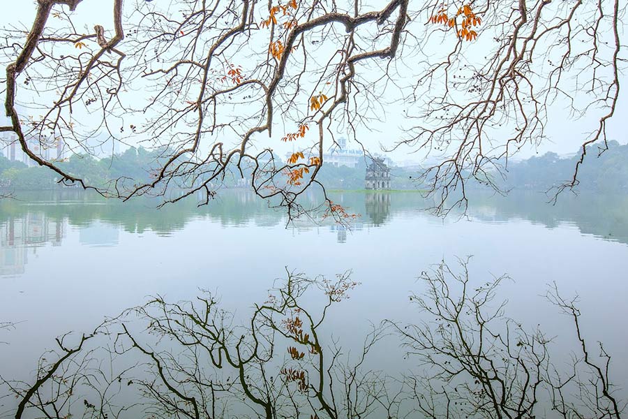 4. Exercising by Hoan Kiem Lake in the morning