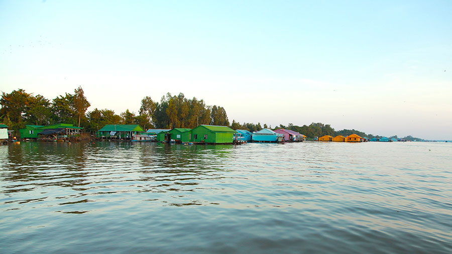 Chau Doc Floating Village is located in An Phu District, about 3km from Chau Doc City center. Floating houses and adjacent fish rafts, located close together with bright colors, create a very special village in the middle of a rich river region. These fish raft villages have existed since the 60s of the last century.