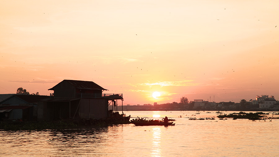 If you come to Chau Doc floating village early in the morning, you will see the bustling scene of people here trading. Boats selling breakfast, food, groceries, and daily necessities stop right below the houses of the people. If you come here in the late afternoon, you will see the poetic and romantic scene when the sunset gradually falls, the Hau River and Tien River branches are dyed yellow, looking extremely beautiful.