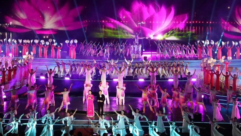 The Visit Viet Nam Year – Hue 2025 opening ceremony featured a grand artistic performance themed “The River’s Serenade.” Staged in a semi-realistic riverside setting, the production involved over 800 performers, including renowned singers, artists, and international art troupes. Notable highlights included drone light shows, electronic water drums, panoramic water music, flying dragons, and parachute performances. The ceremony also featured a dazzling fireworks display celebrating the 50th anniversary of Hue’s Liberation (1975–2025).