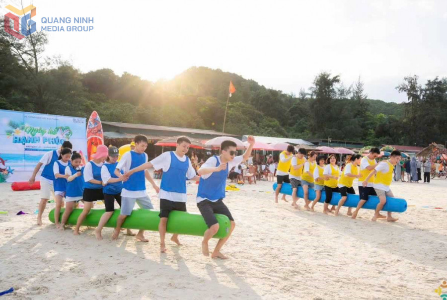Du khách tham gia Team Building tại bãi biển Minh Châu