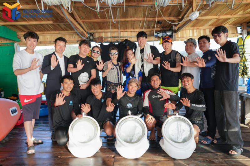 Đoàn khách Hàn Quốc thích thú khi lựa chọn dịch vụ lặn biển ở huyện đảo Cô Tô